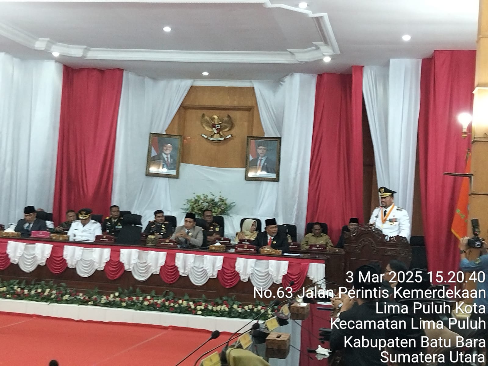 Rapat paripurna pelepasan Pj Bupati Batubara dan penyambutan Bupati dan Wakil Bupati Batubara di di ruang Rapat Paripurna DPRD Jalan Perintis Kemerdekaan Kecamatan Limapuluh Senin (3/3/2025). Berita Sore/ist