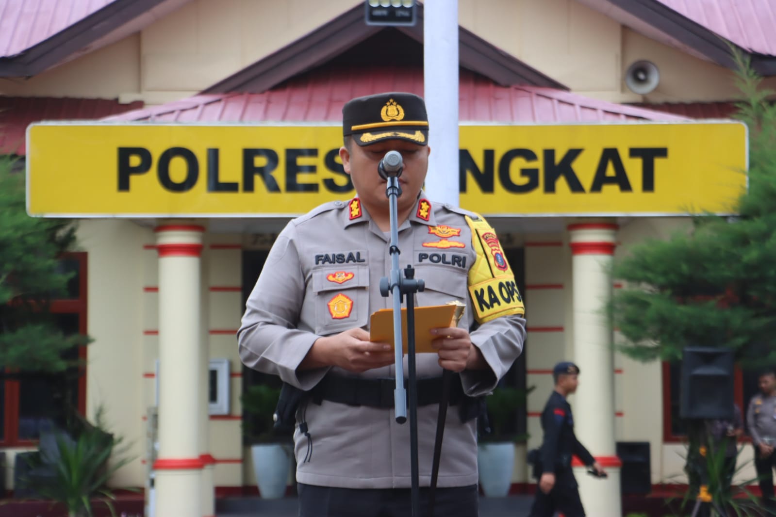 Berita Sore/ist Kapolres Langkat AKBP Faisal Rahmat HS memimpin apel gelar pasukan operasi kepolisian kewilayahan "Zebra Toba 2023" di Lapangan Jananuraga Mapolres Langkat, Senin (4/9) pagi.