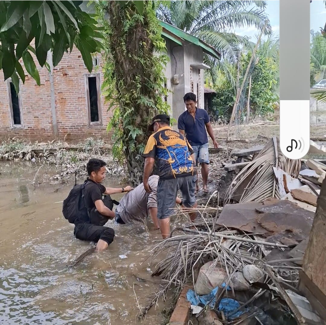 Saat memantau sekaligus menyalurkan bantuan sosial, Kapolres sempat tercebur ke dalam genangan air akibat kondisi tanah yang labil di lokasi banjir, Sabtu (6/12/2025).