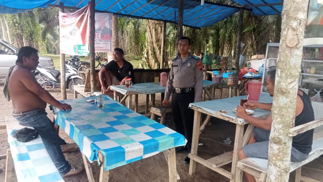 Kasat Binmas Polres Batubara AKP Suharmono SH didampingi Kanit Binkamsa Bripka Suparman SH, Kanit Binpolmas Bripka Sucipto mengajak warga agar tetap bekerja sama aktif menjaga Kamtibmas Kondusif dan tidak terhasut berita hoax menjelang Pemilu.