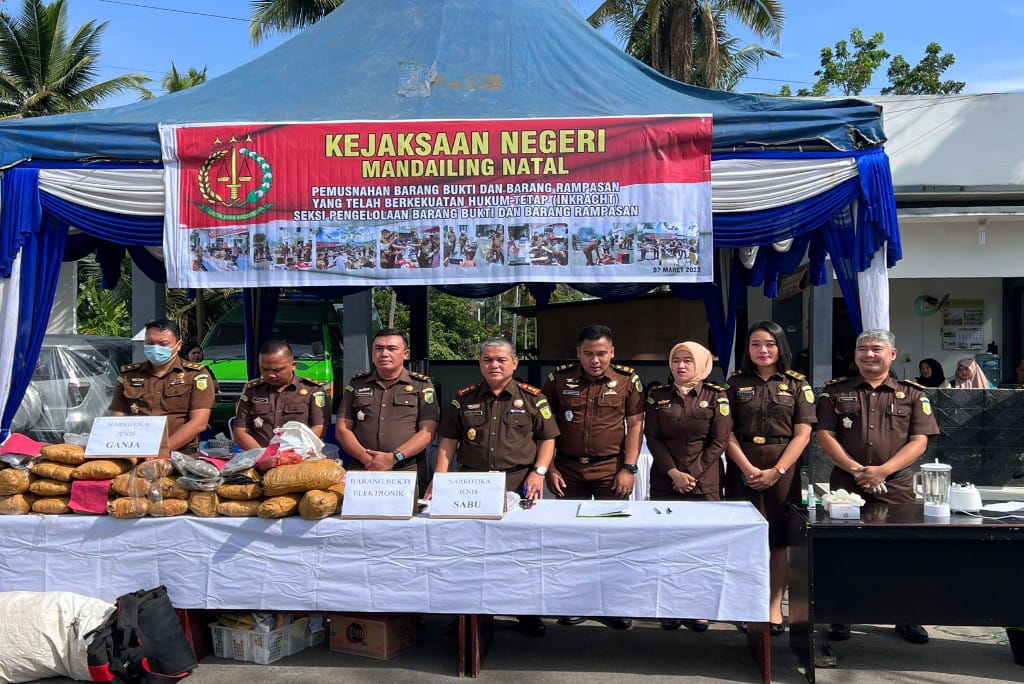 PANYABUNGAN (Berita): Kejaksaan Negeri Mandailing Natal (Kejari Madina) memusnahkan barang bukti (BB) dari 82 kasus kejahatan pidana umum dinyatakan berkekuatan hukum tetap Agustus 2022-Februari 2023.