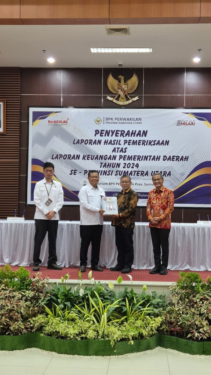 NIAS (Berita): Kepala Perwakilan BPK RI Provinsi Sumatera Utara Paula Henry Simatupang sampaikan Laporan Hasil Pemeriksaan (LHP) BPK atas Laporan Keuangan Pemerintah Daerah (LKPD) Kabupaten Nias Tahun Anggaran 2024 dengan opini Wajar Tanpa Pengecualian (WTP) keempat kalinya.