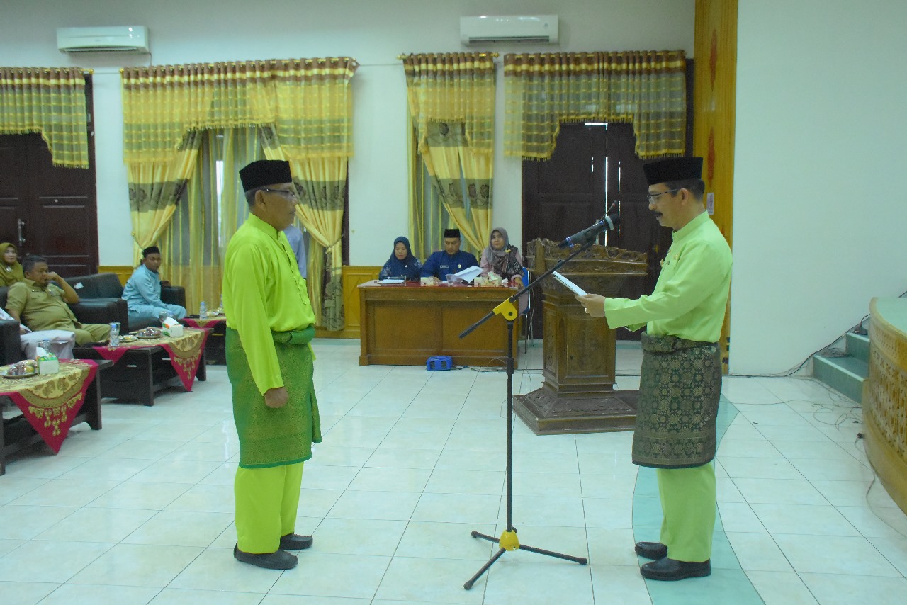 Berita Sore/ist Pj Bupati Aceh Tamiang Meurah Budiman saat mengukuhkan Muhammad Djuned Thahir sebagai Ketua MAA Kabupaten Aceh Tamiang periode 2023-2027, di aula Setdakab setempat, Senin (11/9).