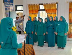 Ketua TPP PKK Kab. Mandailing Natal menghadiri melantik 20 anggota PKK diwakili Asmawati Alamulhaq Daulay dan seluruh Forkopicam Kec. Tambangan serta puluhan tamu undangan. (irh)