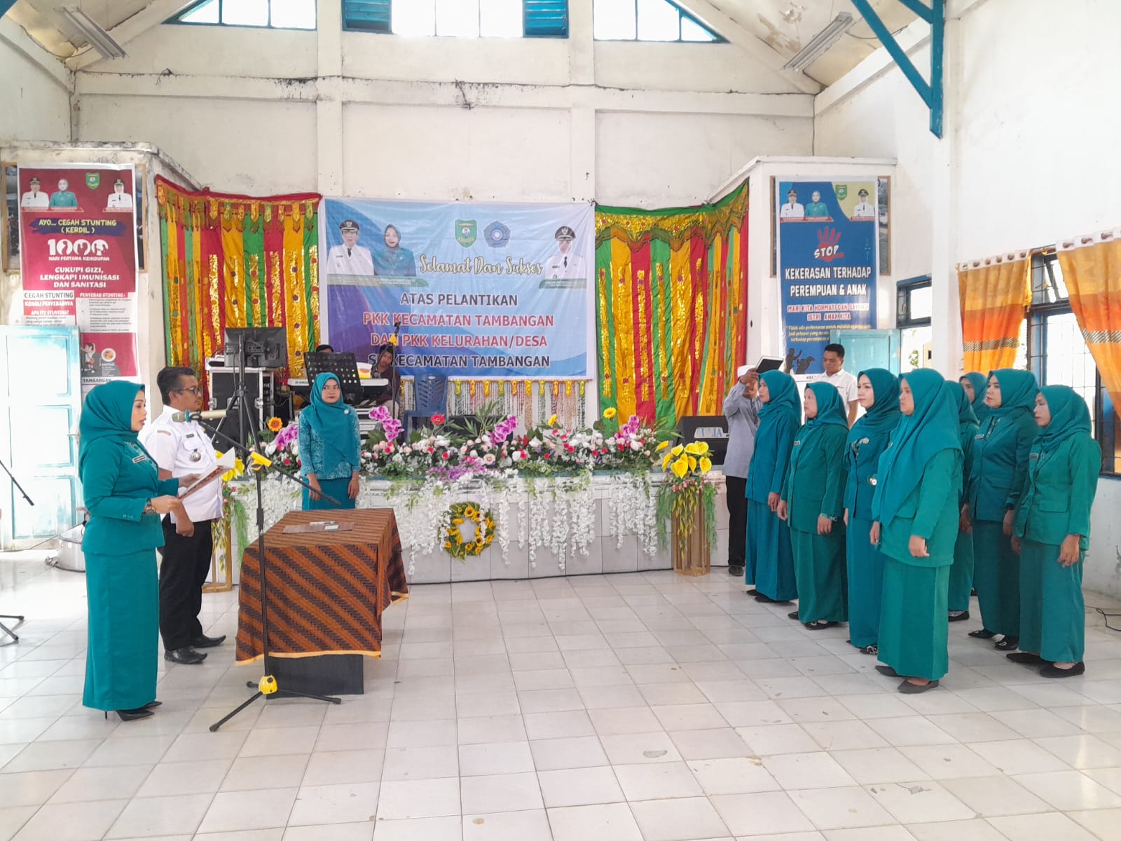 Camat Tambangan Muslih Lubis S.Sos mengatakan, pelantikan anggota TP PKK merupakan wadah aktifitas sosial kemasyarakatan agar menjadikan setiap perempuan semakin maju dan tangguh dalam membina keluarga sejahtera.