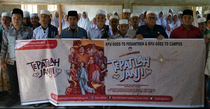PALUTA (Berita): Peringati Hari Santri Nasional ke 10 tahun 2024 dan program Goes to Pesantren, Komisi Pemilihan Umum (KPU) Kabupaten Padang Lawas Utara (Paluta) menggelar nonton bareng (Nobar) film ‘Tepatilah Janji’ di Pondok Pesantren Darussalam Siunggam Jae, Kecamatan Padang Bolak Tenggara, Selasa (22/10/2024).