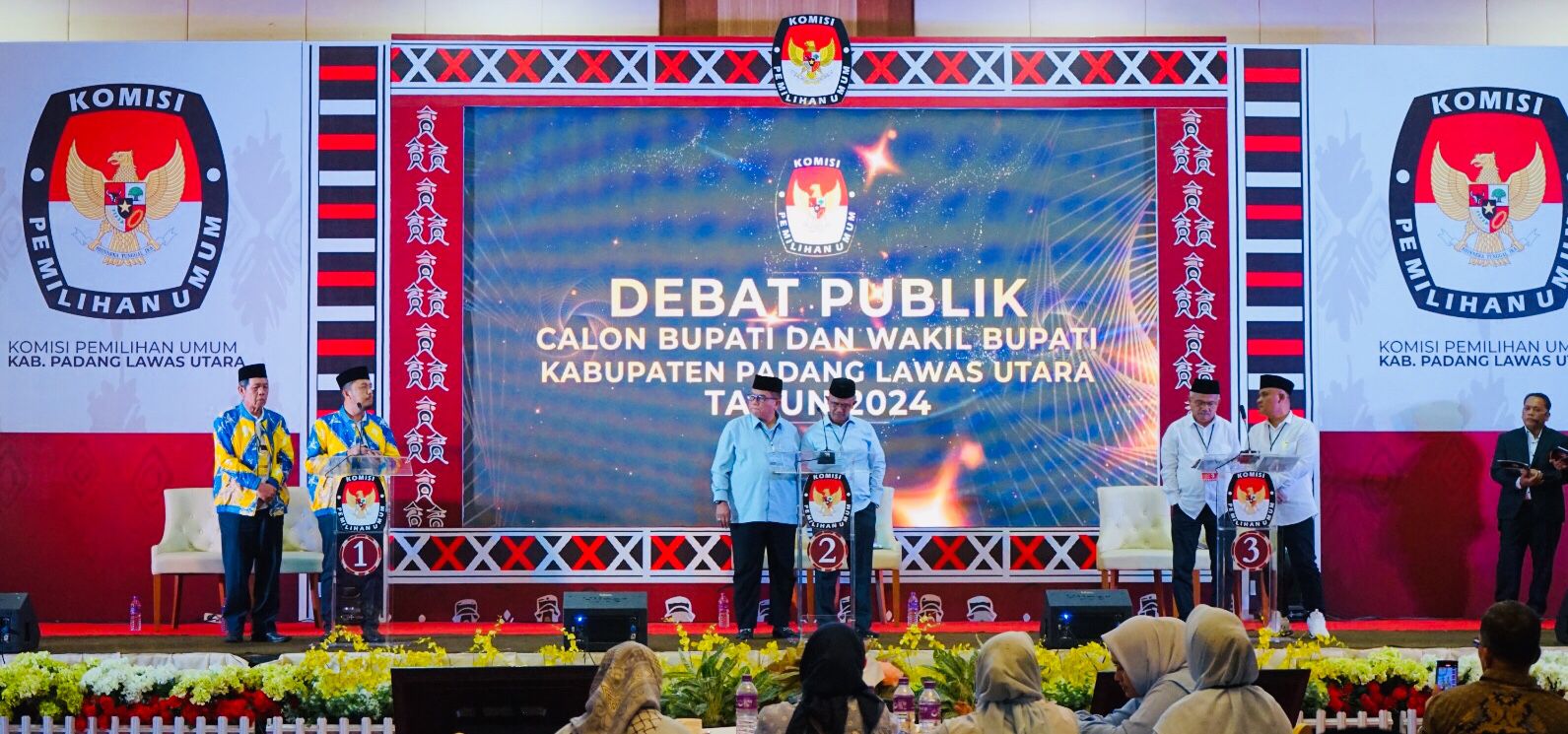 PALUTA (Berita): Komisi Pemilihan Umum (KPU) Kabupaten Padang Lawas Utara (Paluta) menyelenggarakan debat publik calon Bupati dan Wakil Bupati Kabupaten Padang Lawas Utara tahun 2024, di Ballroom hotel Sapadia Gunung Tua Senin (18/11/2024) malam.