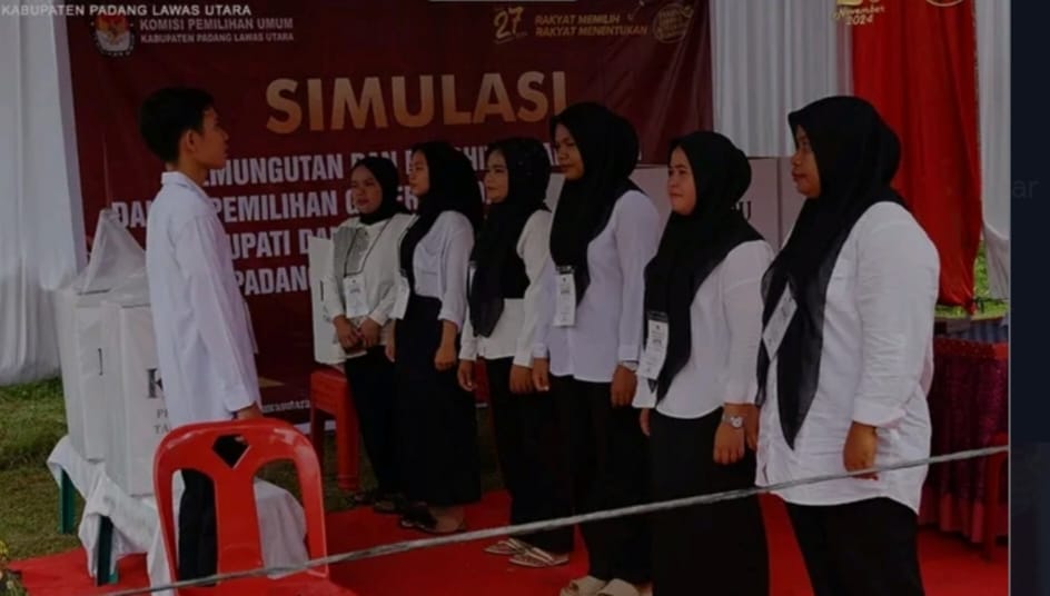 PALUTA (Berita): Komisi Pemilihan Umum (KPU) Kabupaten Padang Lawas Utara (Paluta) melaksanakan kegiatan simulasi pemungutan penghitungan suara serta penggunaan Sirekap Pilkada serentak tahun 2024 di Balai Desa Aek Suhat. Kecamatan Padang Bolak Minggu (17/11/2024).