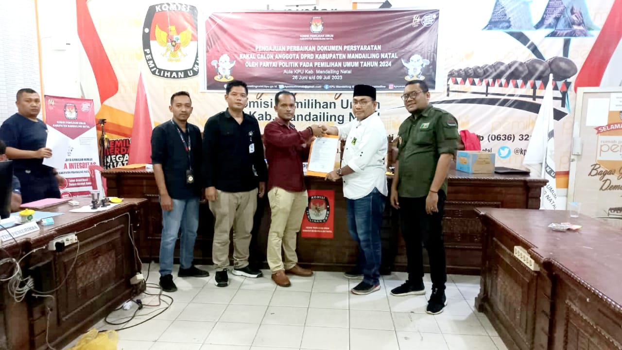 “Alhamdulillah, pengajuan perbaikan berkas Bacaleg kita sudah diterima dan tanda terimanya juga sudah diserahkan oleh KPUD Madina kepada kami,” ujar M. Irwansyah Lubis, SH, lulusan pondok pesantren Musthafawiyah Purbabaru dan alumni Fakultas Hukum UMA.