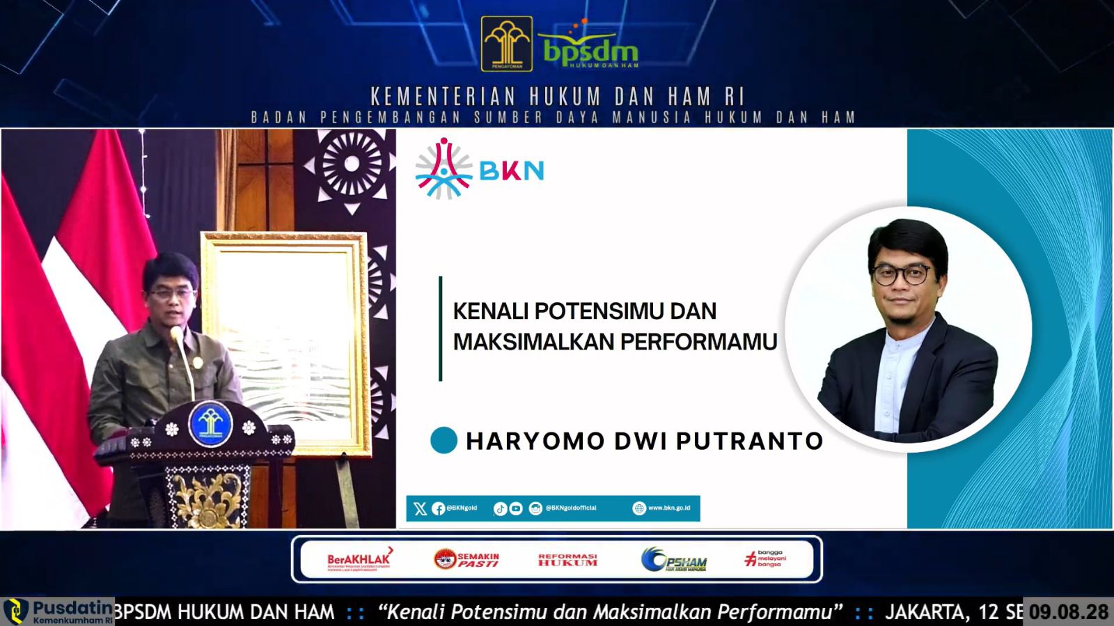 Berita Sore/alirsyah Plt Kepala Badan Kepegawaian Negara, Haryomo Dwi Putranto pada webinar series 3 secara virtual yang digelar Kemenkumham Kamis (12/9/2024).