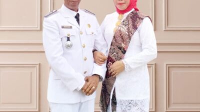 Camat Rantobaek Sopian, SAg dan Ketua TP PKK Rantobaek Ny Srihandayani Sopian.