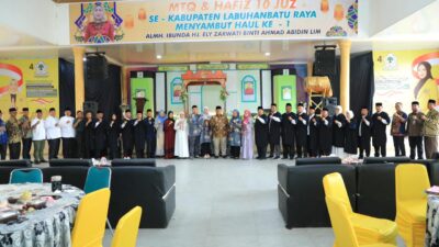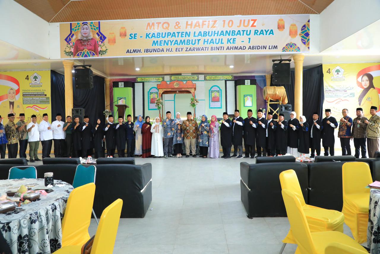 LABUHANBATU UTARA (Berita): MTQ dan Tahfizhul Qur’an 10 juz se-Kabupaten Labuhanbatu Raya menyambut HAUL ke 1 almarhumah (Almh) Ibunda Hj Elyzarwati Binti H Ahmad Abidin Lim, resmi dibuka dengan ditandai pemukulan beduk, Kamis (21/9).