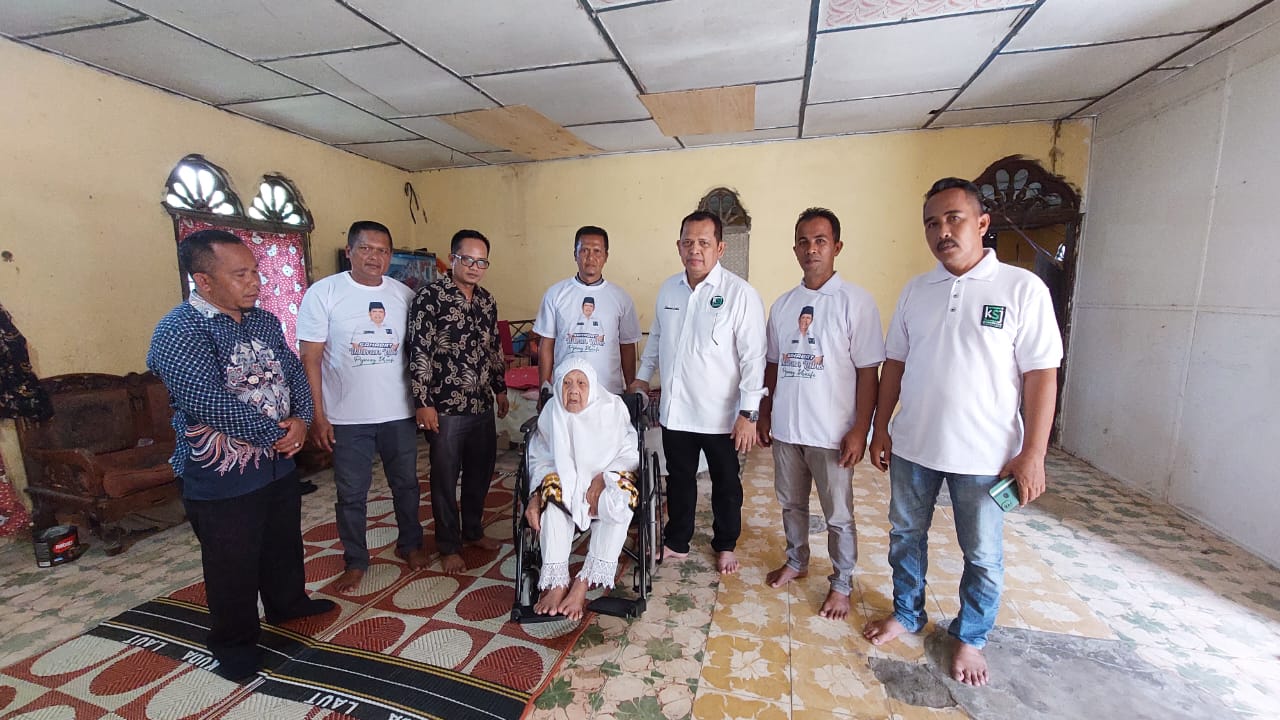 BATUBARA (Berita): Senyum sukacita terlihat diraut wajah Nek Supiah, 70 warga Dusun Sempurna Desa Medang Baru, Kecamatan Medang Deras, Kabupaten Batubara tatkala menerima kursi roda dari Sang Pejuang Dhuafa H Ikhwan Lubis, mantan Kapolres Batubara.