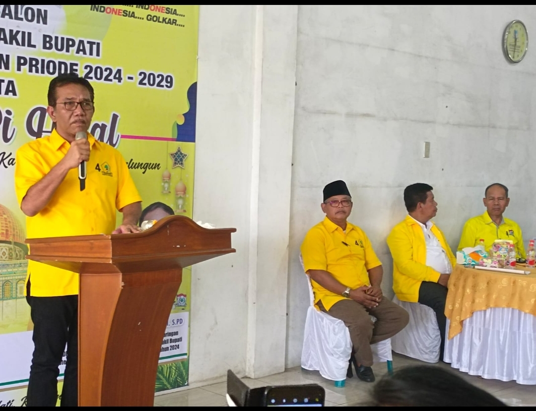 Timbul Jaya Sibarani selaku Ketua Partai Golkar Kabupaten Simalungun saat menyampaikan sambutannya mengatakan sesuai kesepakatan dari DPP Partai Golkar berkomitmen untuk memenangkan Radiapoh Hasiholan Sinaga menjadi Bupati Simalungun periode 2025-2030.