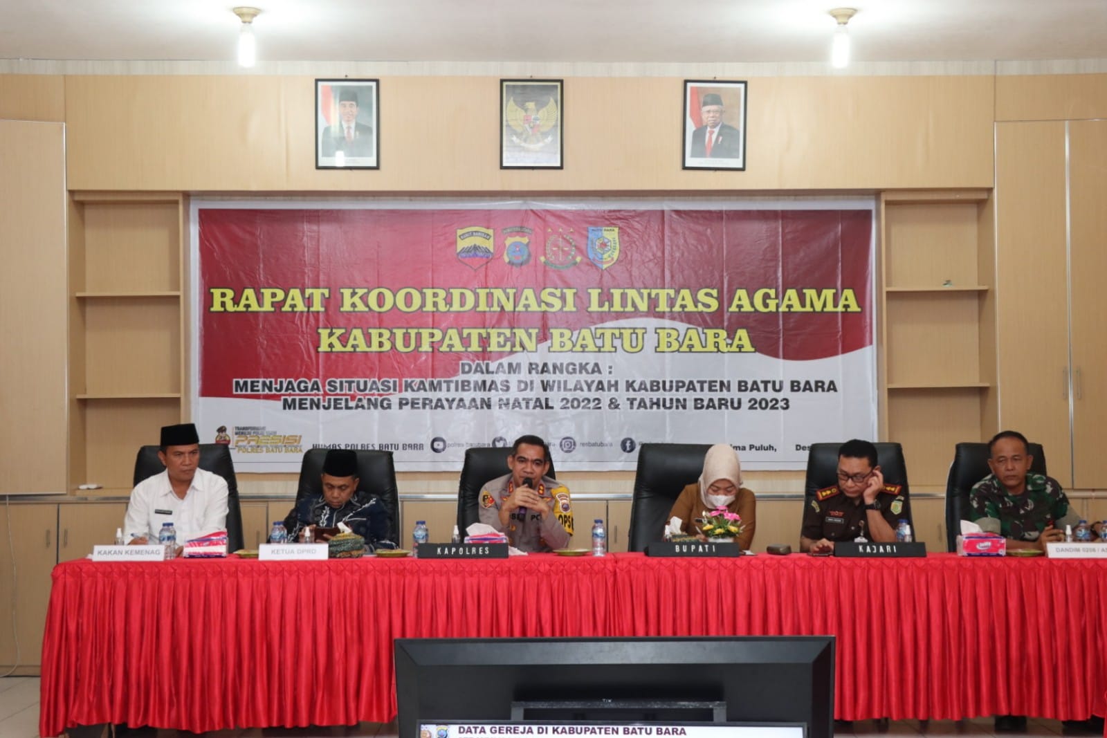 LIMA PULUH (Berita): Ini semua bukan hasil kerja keras saya sendiri, melainkan kerja keras anggota baik Kapolsek dan jajaran, Danramil, instansi terkait,terutama Tokoh Masyarakat yang dapat bersama-sama bersinergi sehingga toleransi antar ummat beragama, ucap Kapolres Batu Bara AKBP Jose D.C. Fernandes S.I.K pada Rapat koordinasi Lintas Agama di Aula Bhayangkari Polres Batu Bara Selasa (06/12/2022).