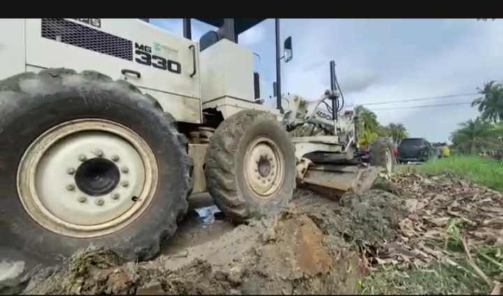 Pemkab.Batu Bara perbaiki jalan Desa Bagan Baru Kecamatan Nibung Hangus Kabupaten Batu Bara, Senin (31/10/2022).beritasore/alirsyah