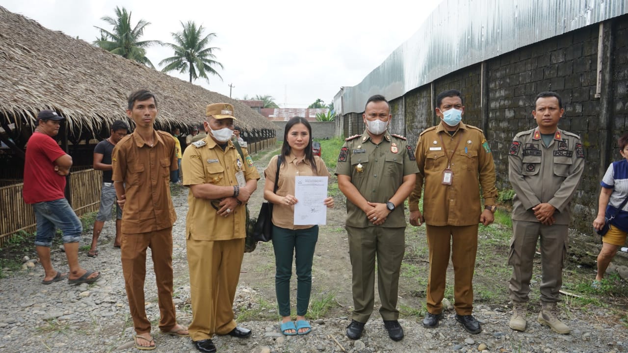 Selanjutnya Kasat Pol PP Kabupaten Langkat Dameka Putra Singarimbun S. STP memberikan surat peringatan pertama kepada pemilik ternak babi dan bebek.