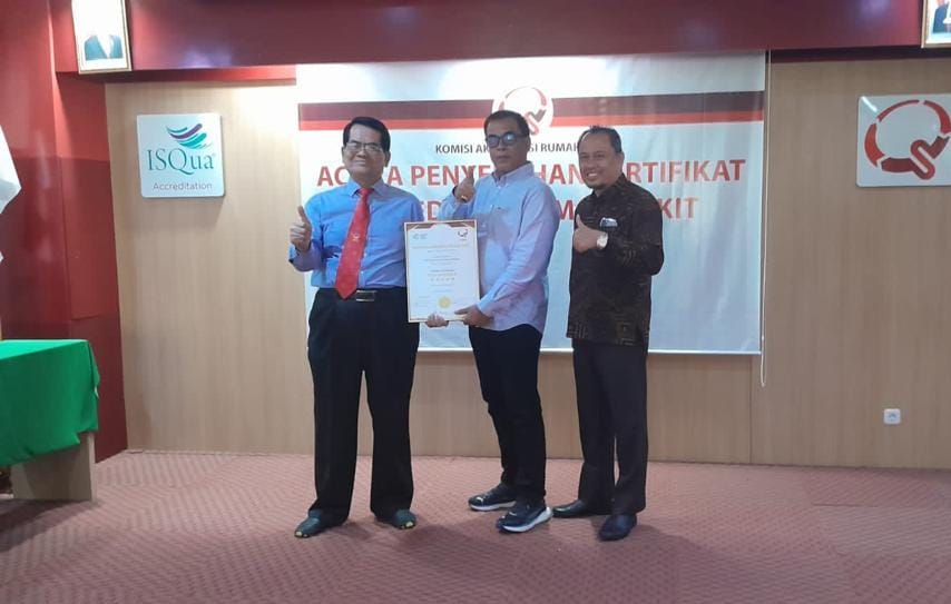 Sertifikat akreditasi diserahkan Ketua Eksekutif KARS Dr. dr. Sutoto, M.Kes, FisQua, kepada Bupati Madina HM Jafar Sukhairi Nasution didampingi Direktur RSUD Panyabungan dr. Rusli Pulungan, Sp.THT di Jakarta Selatan.