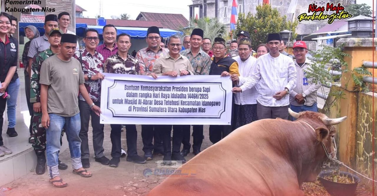 NIAS (Berita): Menjelang perayaan Hari Raya Idul Adha 1446 H/2025 M, Pemerintah Kabupaten Nias serahkan secara langsung hewan Qurban bertempat di Masjid Al-Abrar Tetehosi Idanogawo, Masjid Al-Musanif Hiliweto Gido, Masjid As-Sakinah Bozihona Kecamatan Idanogawo. Kamis (5/06/2025)