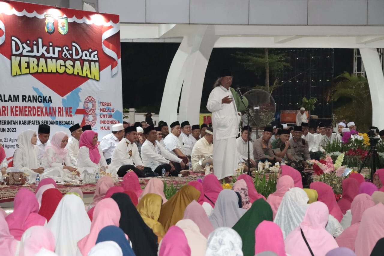 SERGAI (Berita): Pemerintah Kabupaten Serdang Bedagai bersama jajaran Kepolisian Daerah Sumatera Utara (Poldasu) mengadakan zikir dan doa kebangsaan, bertempat di Masjid Agung Sergai, Sei Rampah, Senin (21/08)malam.