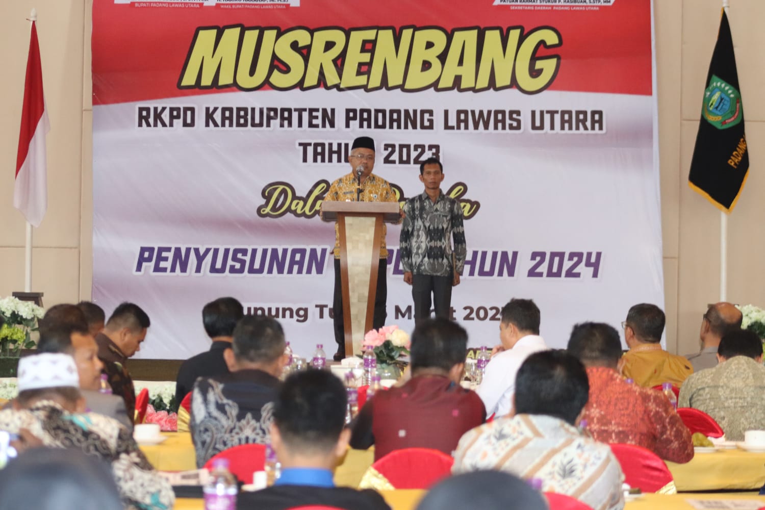 Musrenbang dihadiri Bupati Padang Lawas Utara Andar Amin Harahap, S.STP., M.Si., diwakili oleh Wakil Bupati Padang Lawas Utara H. Hariro Harahap, SE., M.Si., Gubernur Sumatera Utara yang diwakili oleh Kadis Kesehatan Provsu, Ketua dan Anggota DPRD Kabupaten Padang Lawas Utara.