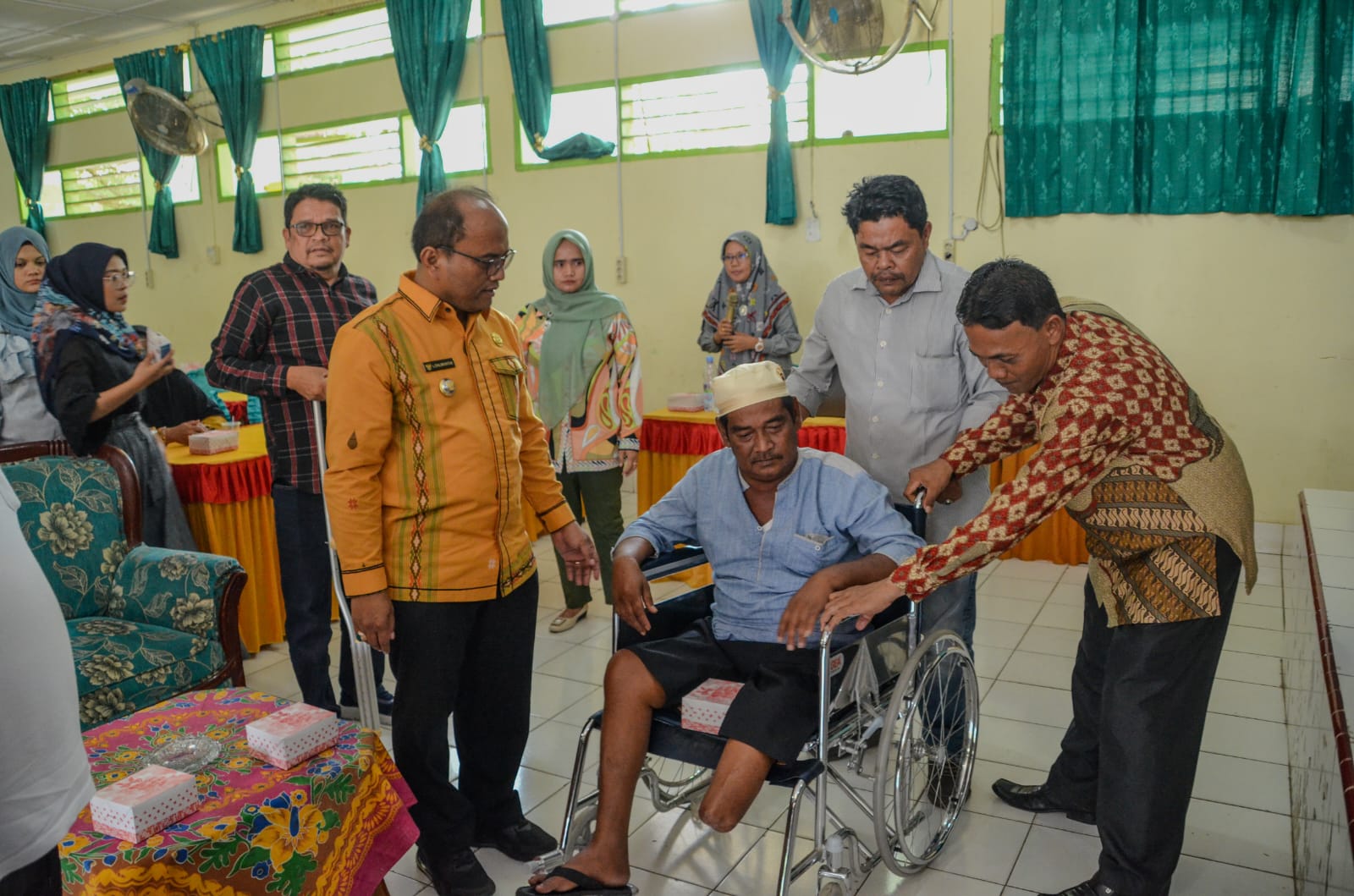 PADANGSIDIMPUAN (Berita): Pemerintah Kota Padangsidimpuan melalui Dinas Sosial menyalurkan bantuan berupa alat bantu bagi penyandang disabilitas di Aula MAN 2 Padangsidimpuan,Jum’at (03/11).