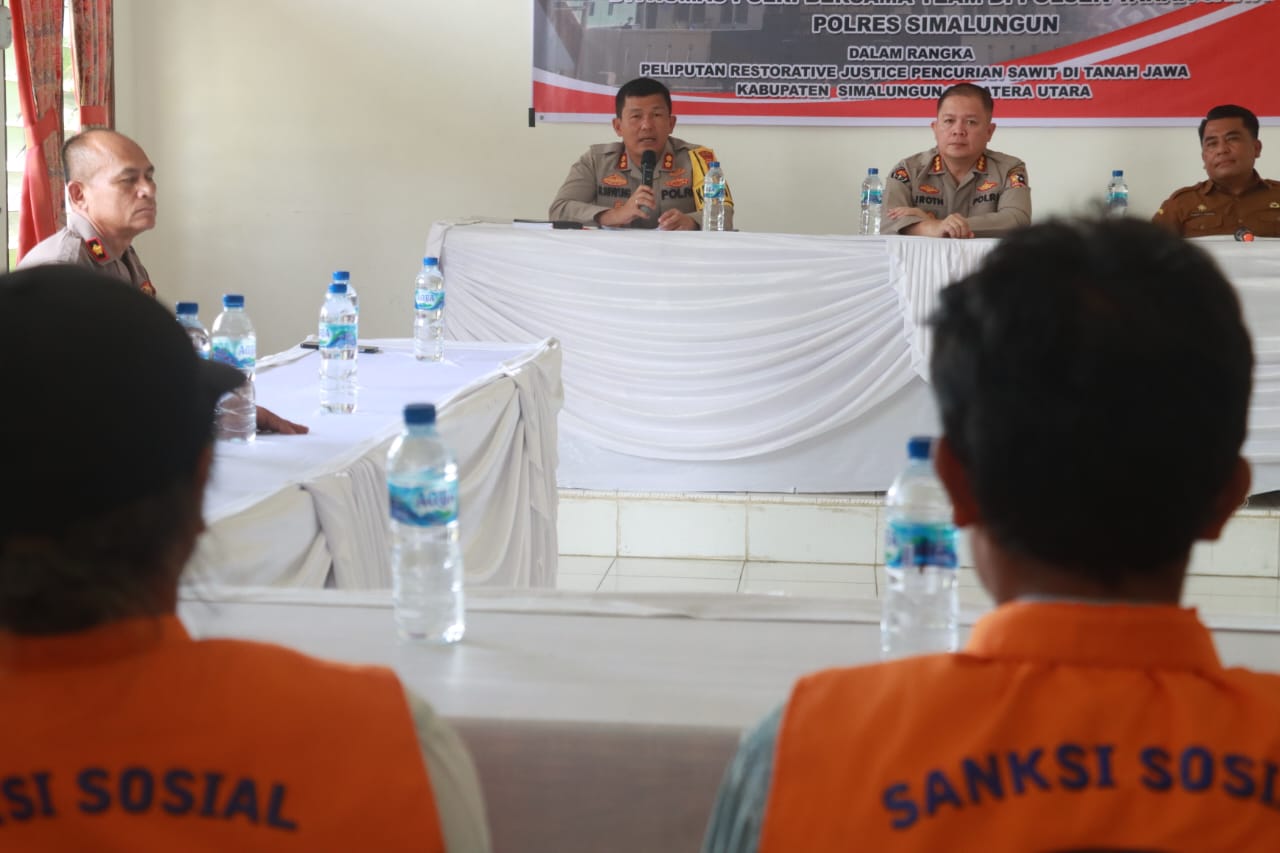 Simalungun (Berita): Belum lama ini Polres Simalungun c/q Polsek Tanahjawa menggelar sidang Restorative Justice (RJ) massal sebanyak 64 laporan polisi (LP) dengan 70 orang tersangka pencurian buah kelapa sawit milik PTPN IV.