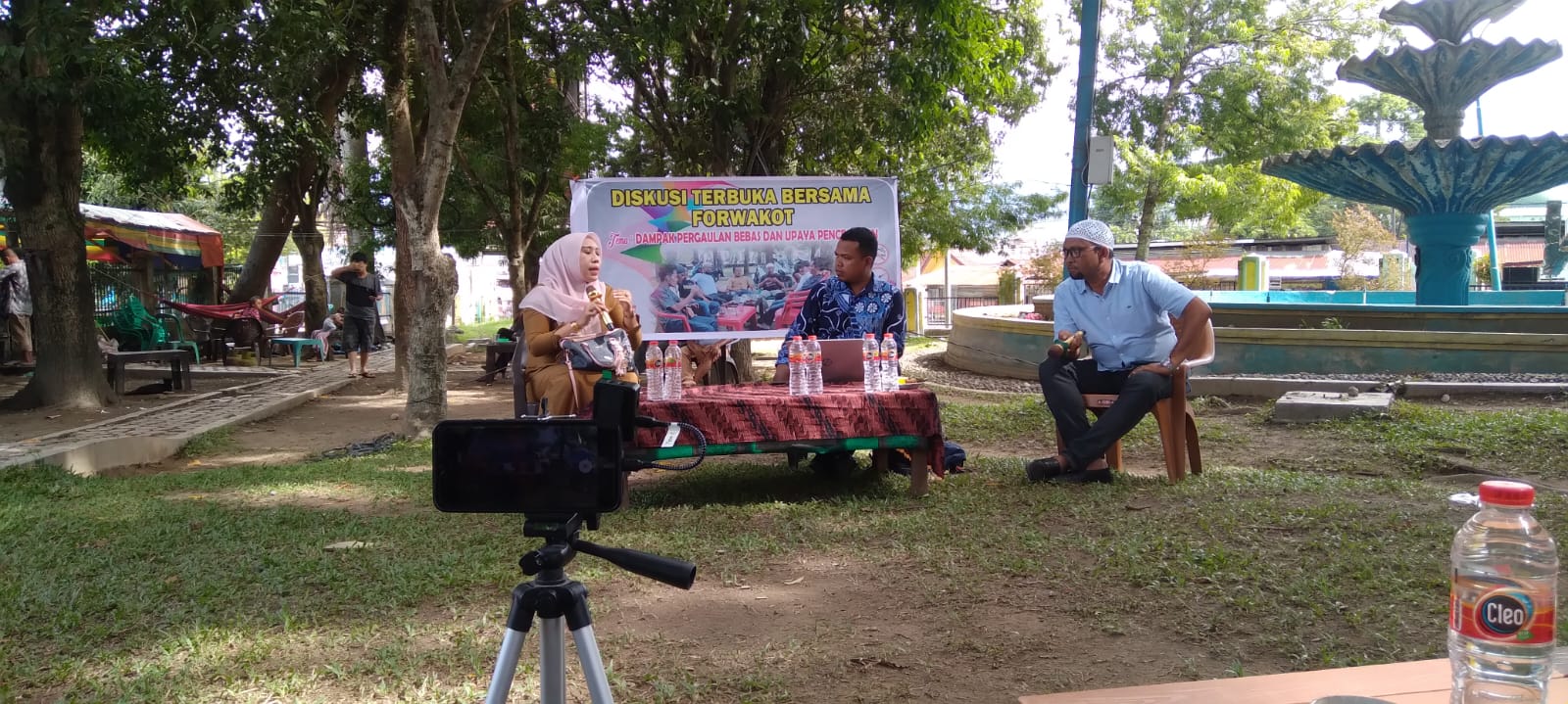 Forum Wartawan Kota (Forwakot) Panyabungan menggelar diskusi terbuka bertema Dampak Pergaulan Bebas dan Pencegahannya di Taman Kota Panyabungan, Selasa (11/7).
