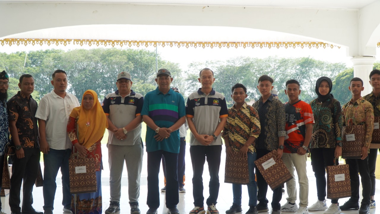 Plt Bupati Langkat H. Syah Afandin, SH di dampingi Sekretaris Daerah Langkat H. Amril, S.Sos, M.AP, Inspektur Langkat Drs. Hermansyah, M.IP, serta Kepala Dinas Pemuda dan Olahraga Kabupaten Langkat Ngaturken PA, M.Pd menyerahkan taliasih kepada pembina, pelatih, wasit, dan atlet yang ada di Kabupaten Langkat.