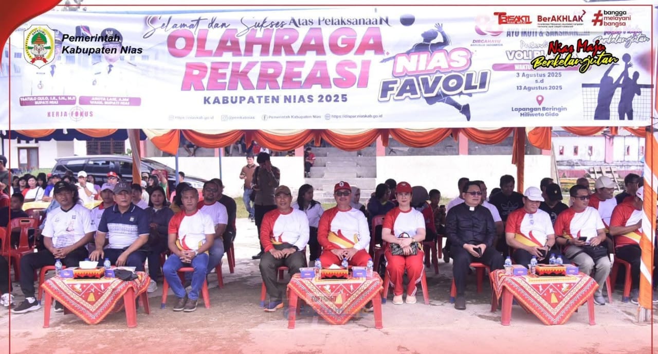 NIAS (Berita): Menjelang peringatan HUT ke 80 Kemerdekaan Republik Indonesia, Pemerintah Kabupaten Nias melalui Dinas Pariwisata Pemuda dan Olahraga Kabupaten Nias menggelar beberapa rangkaian kegiatan di antaranya Olahraga Rekreasi di Lapangan Beringin Hiliweto-Gido Minggu (3/8/2025).
