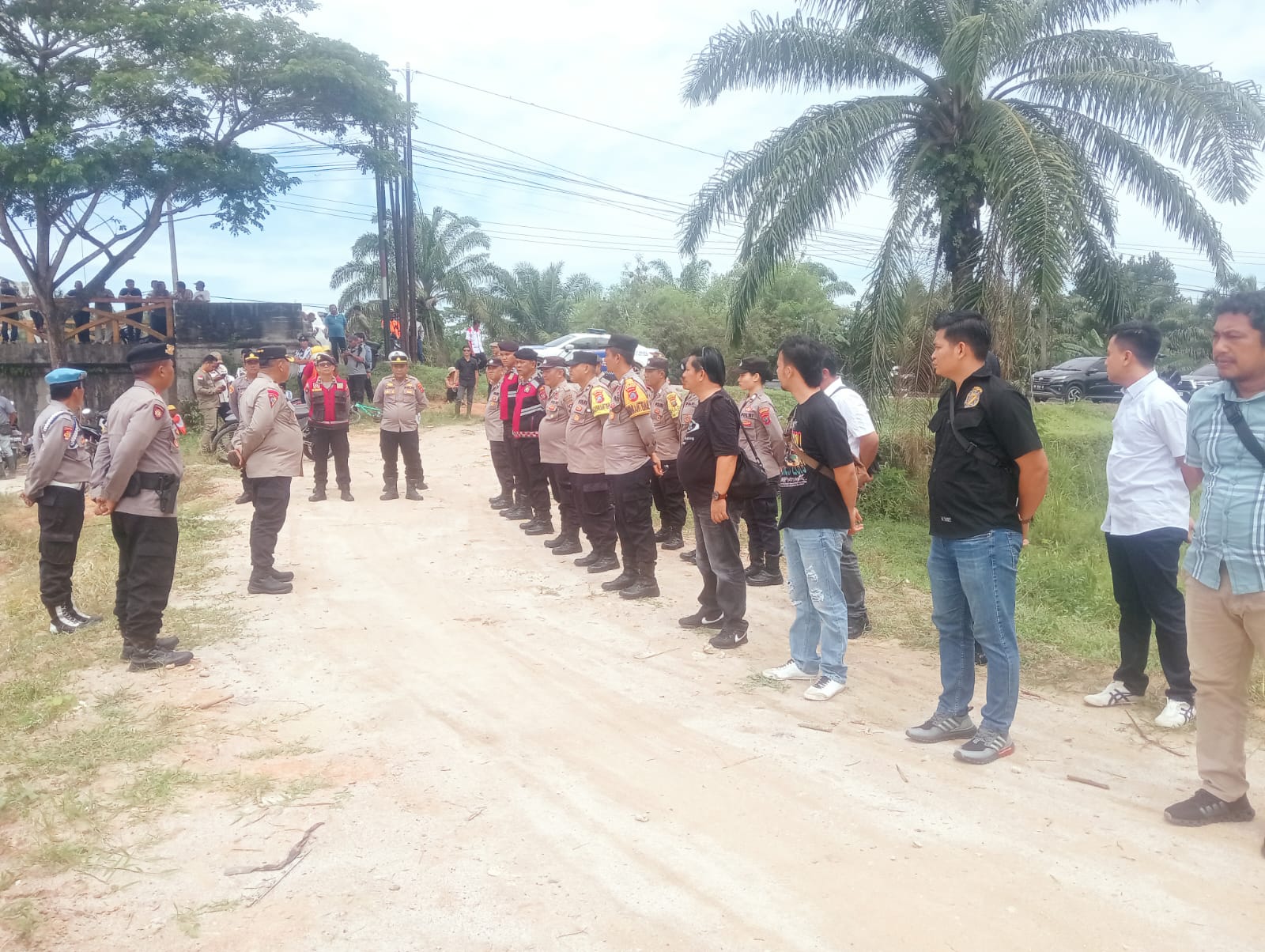 Waka Polsek Indrapura IPTU M.Siregar SH dan Personil Polsek Polres Batu Bara yang tersprint menggelar Apel kesiapan pengamanan Kunjungan kerja (Kunker) Gubernur Sumatera Utara Bobby Afif Nasution meninjau Bendung Irigasi Cinta Maju Sungai Dalu-Dalu Desa Sukaraja Kecamatan Air Putih Rabu (11/06/2025).