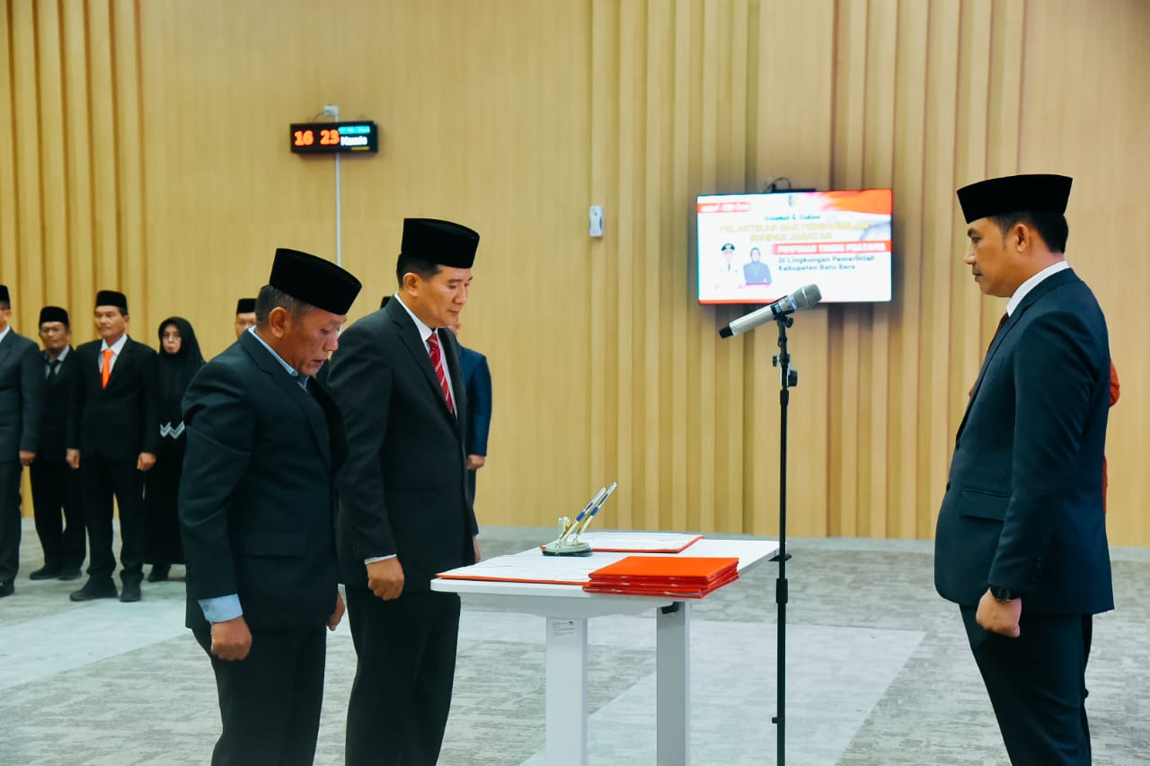 BATUBARA (Berita) Penjabat (Pj) Bupati Batubara, Heri Wahyudi Marpaung, SSTP, MAP, melantik tiga pejabat pimpinan tinggi pratama di lingkungan Pemerintah Kabupaten Batu Bara di Aula Kantor Bupati, Kecamatan Lima Puluh, Kamis (15/08/2024).