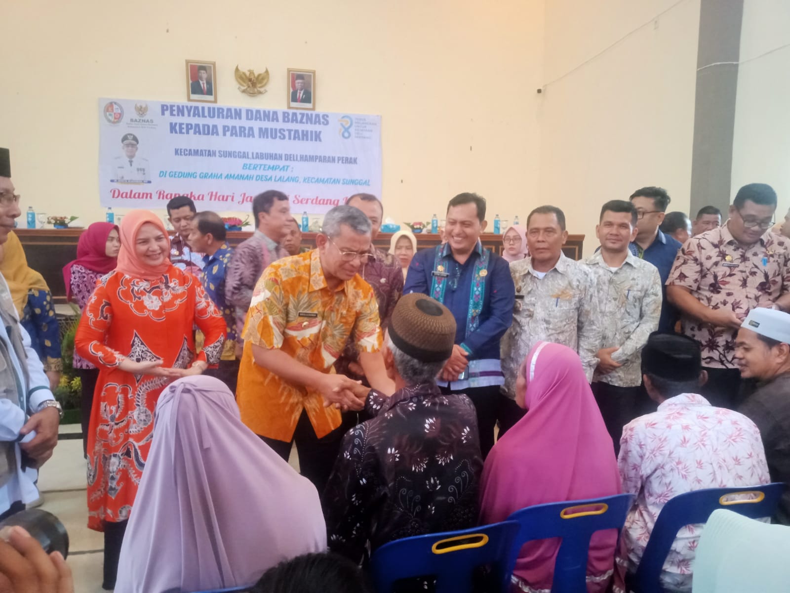 Penyaluran dana Baznas yang diserahkan kepada para mustahik di tiga kecamatan yakni Kecamatan Sunggal, Hamparan Perak dan Labuhan Deli dilaksanakan di gedung Graha Amanah Desa Lalang Jalan Stasiun. Pemberian ini sekaligus memperingati hari jadi Kabupaten Deli Serdang yang ke 78 tahun.