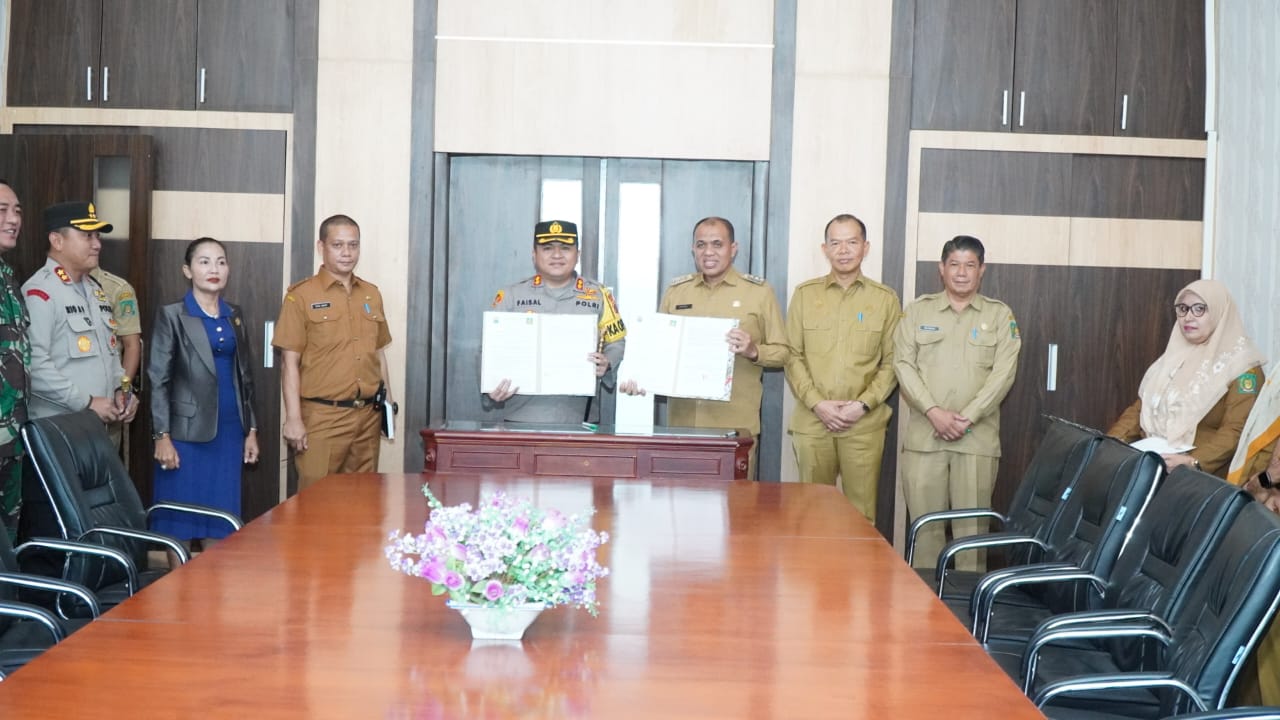 Naskah NPHD Pemkab Langkat dengan Kapolres Binjai ditandatangani oleh Pj Bupati Langkat H.M.Faisal Hasrimy, AP., M.AP