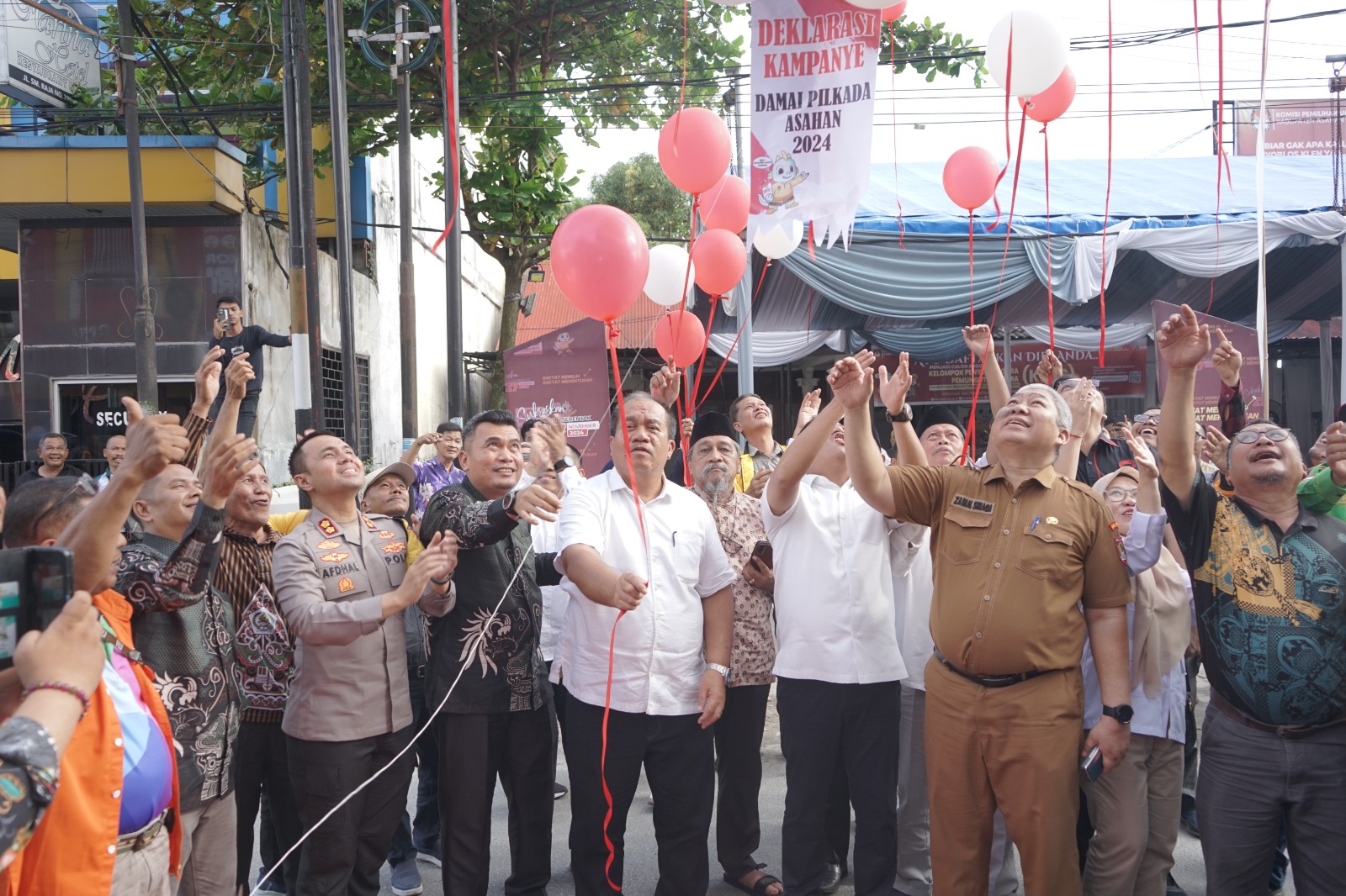 Pembacaan naskah kampanye Damai oleh Calon Bupati dan Wakil Bupati Asahan di dampingi oleh 12 partai pengusung dan penandatanganan Naskah deklarasi Pemilihan Tahun 2024 Calon Bupati dan Wakil Bupati Asahan oleh Pj Sekda Kab Asahan beserta Forkopimda, Ketua KPU, Ketua Bawaslu Kabupaten Asahan yang di ikuti oleh pasangan Calon Bupati dan Wakil Bupati Asahan beserta partai pengusung.
