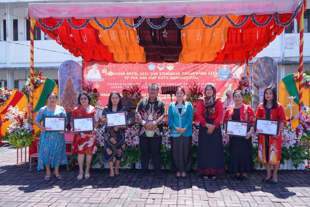 GUNUNGSITOLI (Berita); Wali Kota Gunungsitoli Sowa’a Laoli, SE, MSi mengikuti Perayaan Natal 2024 dan Syukuran Tahun Baru 2025 Tim Penggerak (TP) PKK/ Dharma Wanita Persatuan (DWP) Kota Gunungsitoli