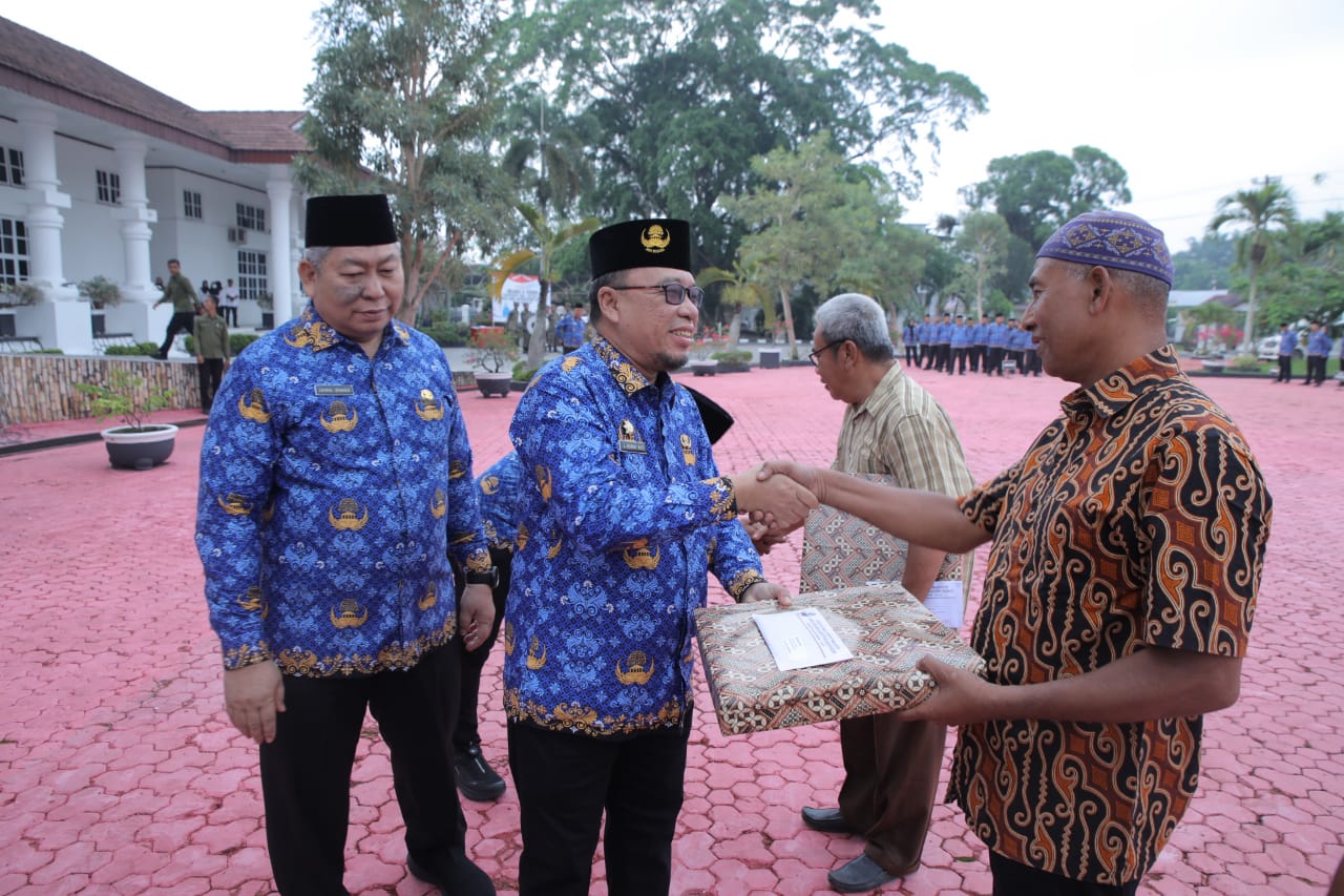 Kegiatan ini dirangkai dengan penyerahan penali kasih PNS yang pensiun Tahun 2024 oleh Plh Sekretaris Daerah Kabupaten Asahan didampingi Ketua DPK KORPRI Kabupaten Asahan Drs John Hardi Nasution, MSi. (min)
