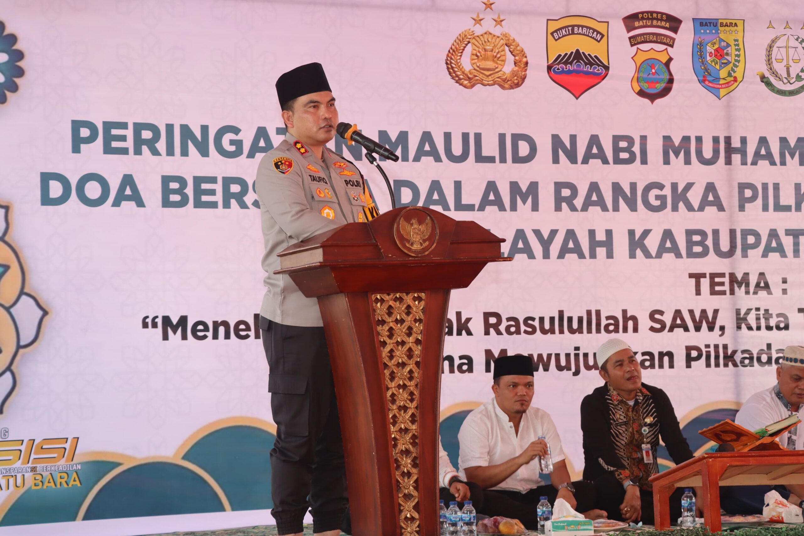 BATUBARA (Berita): Meneladani akhlak Rasulullah SAW, kita tingkatkan keimanan dan kinerja guna mewujudkan Pilkada aman dan sukses.