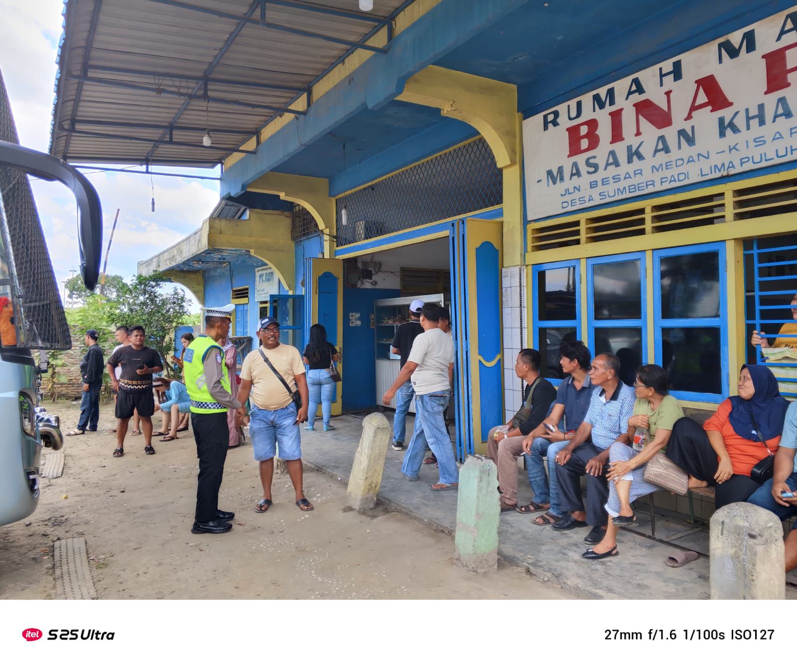 Titik-titik lokasi Polantas menyapa monitoring dan menggelar Cooling System terutama di Loket Bus Rapi Desa Dolok Pop di Kecamatan Limapuluh.