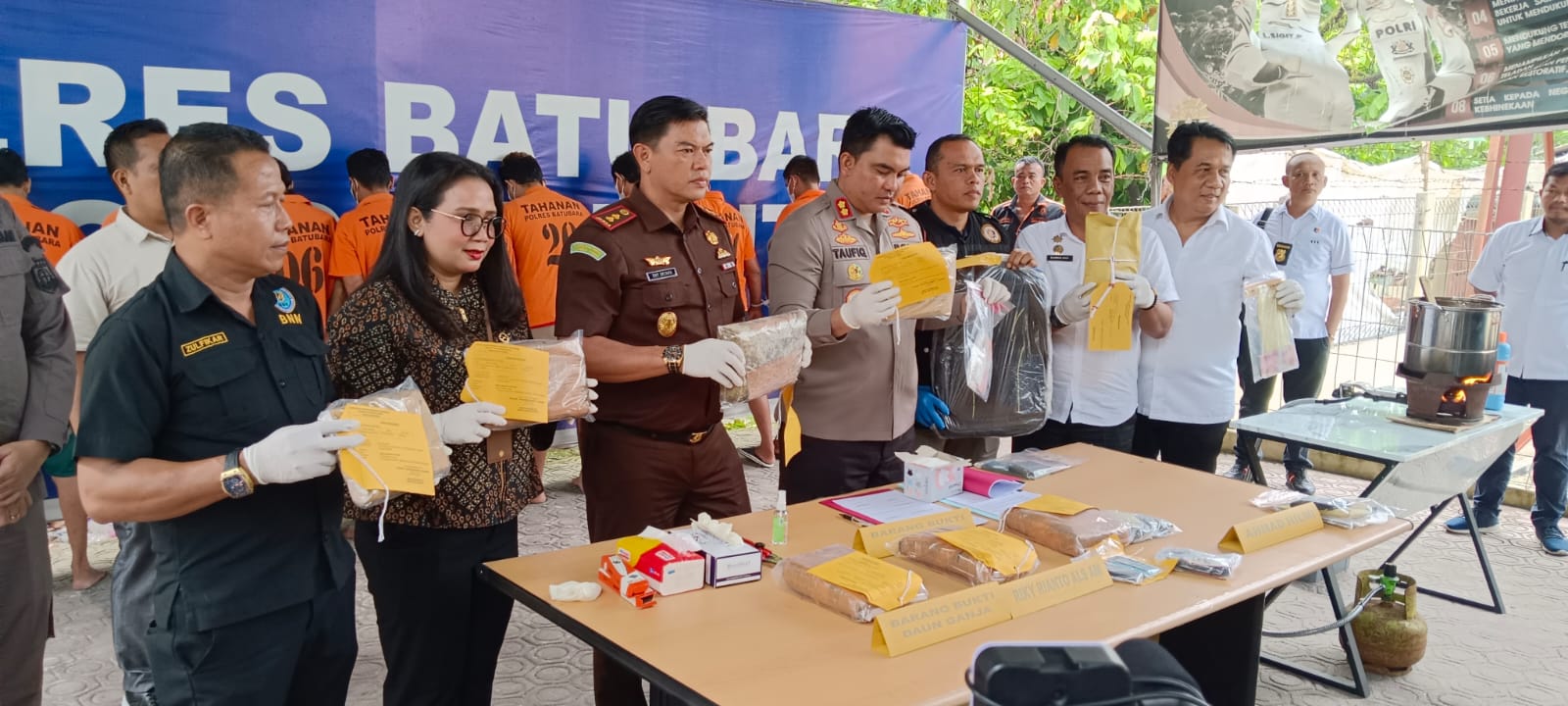 Kepada wartawan, Kapolres Batubara AKBP Taufiq Hidayat Thayeb menyebutkan pemusnahan semua barang bukti hasil kerja keras dan penangkapan Kasat Narkoba dan Tim Reserse dari tempat yang berbeda-beda lokasi.
