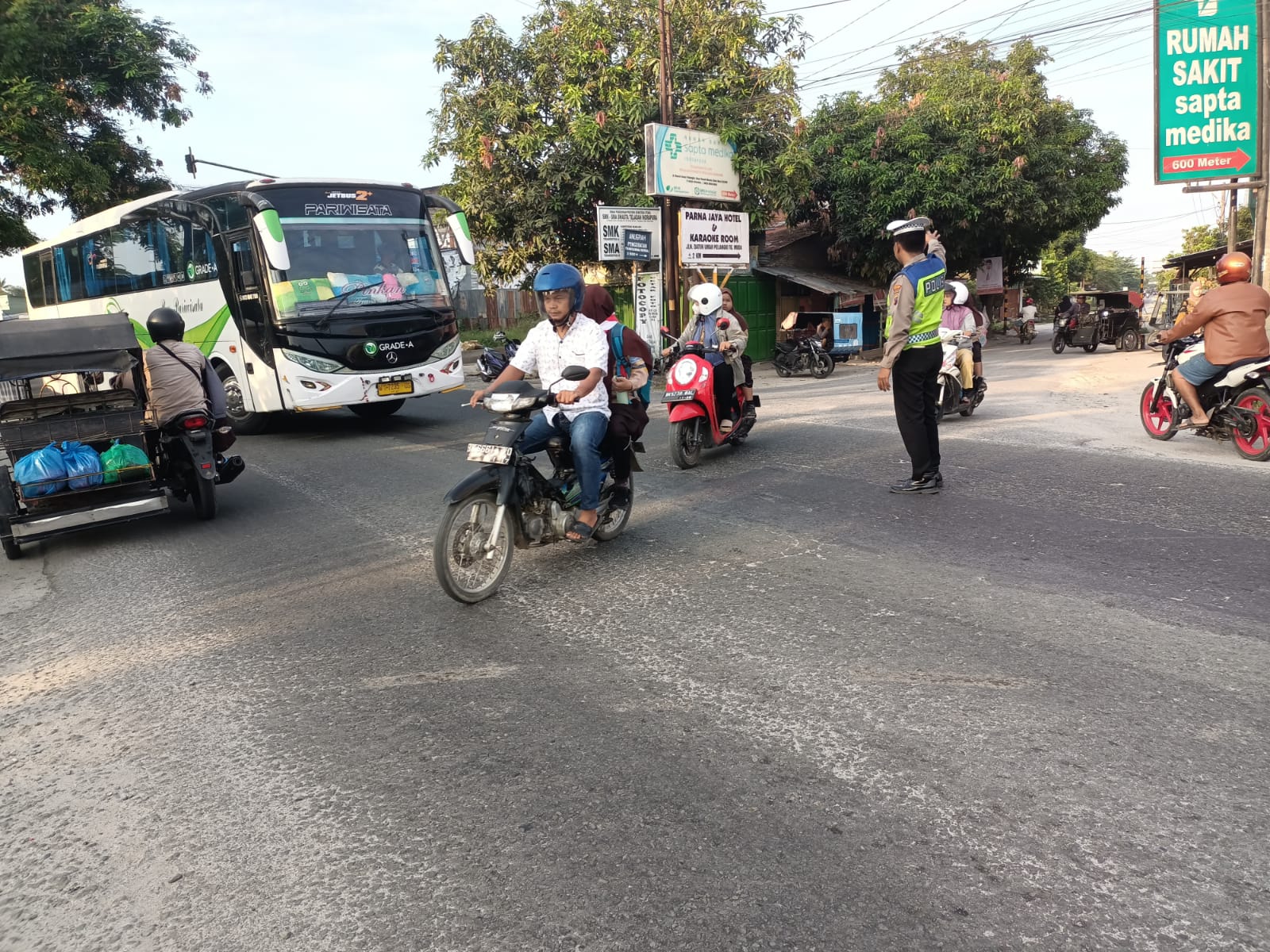 BATUBARA (Berita): Guna menciptakan situasi keamanan, keselamatan, ketertiban dan kelancaran lalulintas (Kamseltibcarlantas) yang kondusif, menekan angka pelanggaran dan kecelakaan Lalulintas di wilayah hukum Polres Batubara, Kasat Lantas Polres Batu Bara AKP HW Siahaan, SH bersama Personil melaksanakan giat pengaturan Lalin di setiap persimpangan Jumat (31/5/2024).