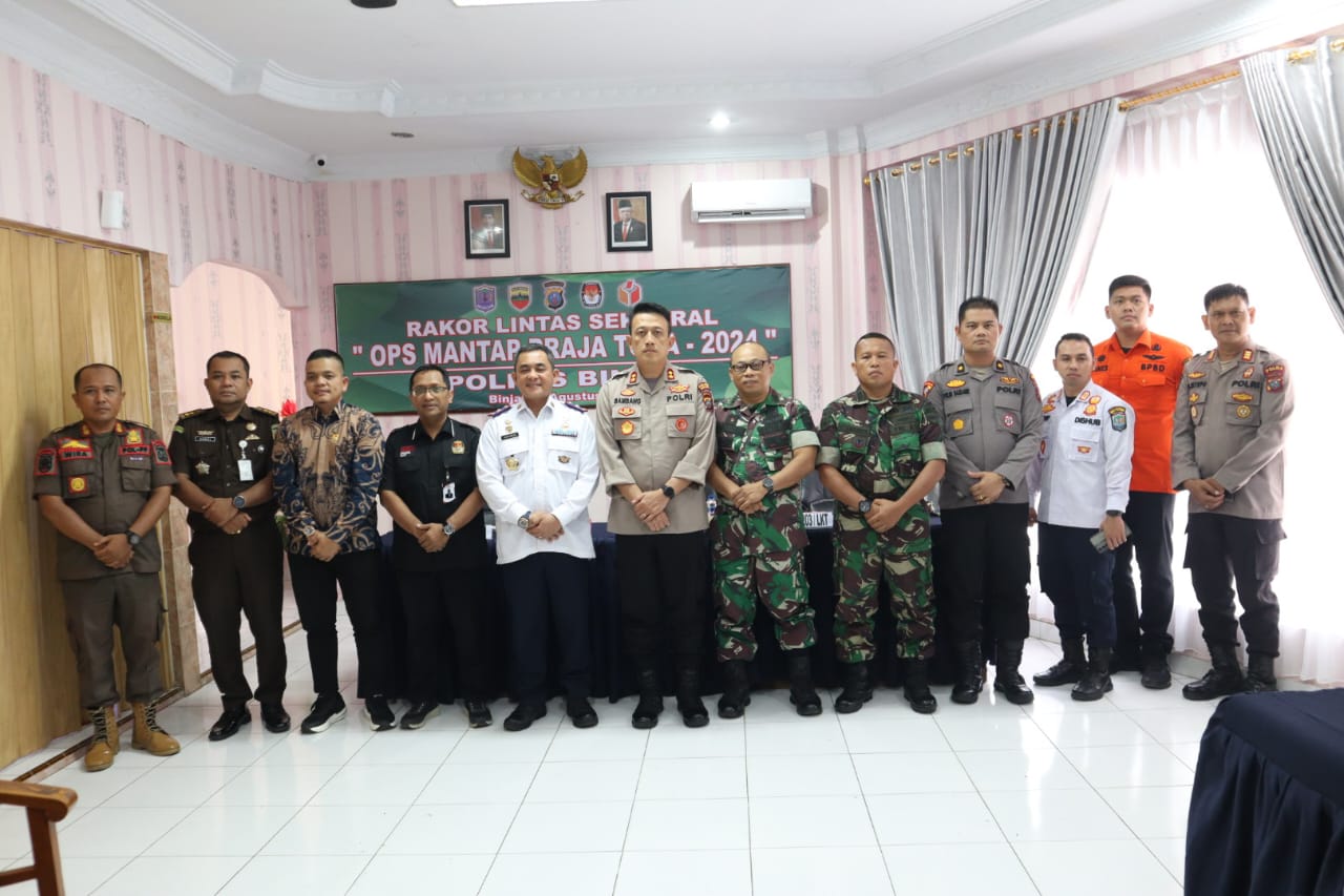 BINJAI (Berita) : Polres Binjai melaksanakan rapat koordinasi lintas sektoral operasi Mantap Praja Toba 2024 di aula Bhayangkari cabang Binjai di jalan Sultan Hasanudin No.1 Binjai, Selasa (13/8).