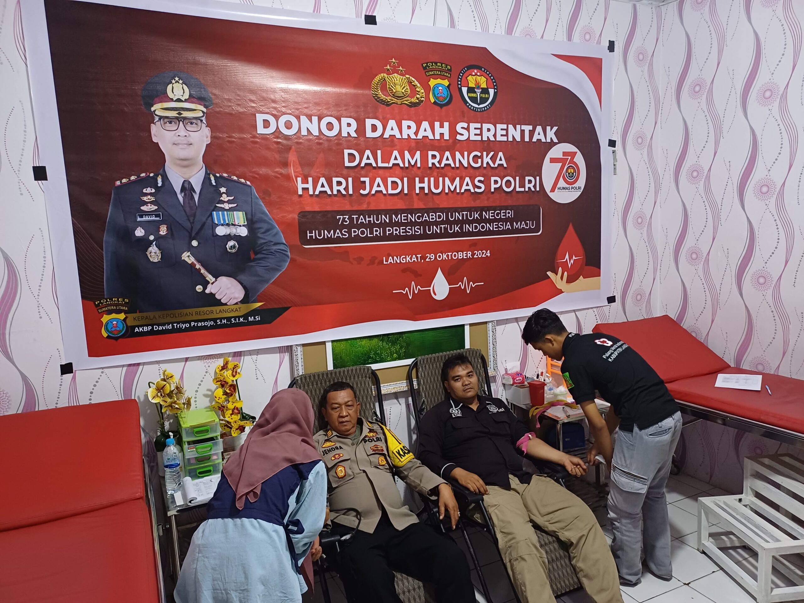 LANGKAT (Berita): Dalam rangka memperingati Hari Ulang Tahun (HUT) Humas Polri ke 73, Polres Langkat menyelenggarakan kegiatan donor darah secara serentak yang dilaksanakan Selasa (29 /10/ 2024).