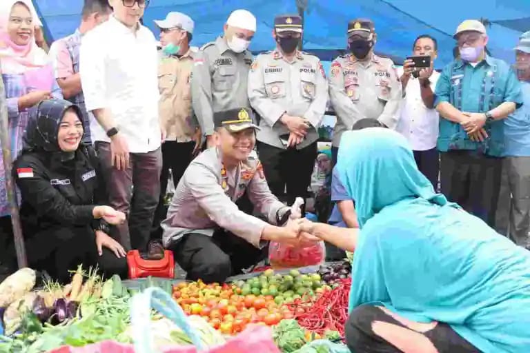 TAPSEL (Berita): Kapolres Tapsel, AKBP Imam Zamroni, dengan Pj Sekda Tapsel, M Frananda pastikan ketersediaan bahan pokok di pasar Sigalangan Kec.Batang Angkola, Sabtu (3/9).