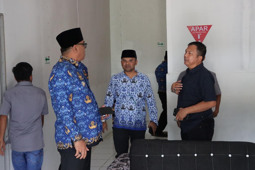 Bupati Madina bersama Kepala Dinas PUPR Madina Rully Andriadi dan Kepala Dinas Pendidikan Madina Dollar Siregar mendatangi langsung kantor PT Jaya Konstruksi di Kelurahan Pidoli Dolok, Kecamatan Panyabungan, Madina, Sumut, Selasa (29/11/2022).