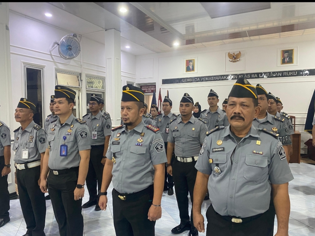 Kepada Berita, Kepala Lembaga Pemasyarakatan Kelas IIA Labuhan Ruku Alexander Lisman Putra melalui Rizky, Humas Lapas mengatakan upacara virtual dihadiri Pejabat Struktural dan Staf Lapas Labuhan Ruku Kementerian Hukum dan HAM (Kemenkumham) Republik Indonesia.