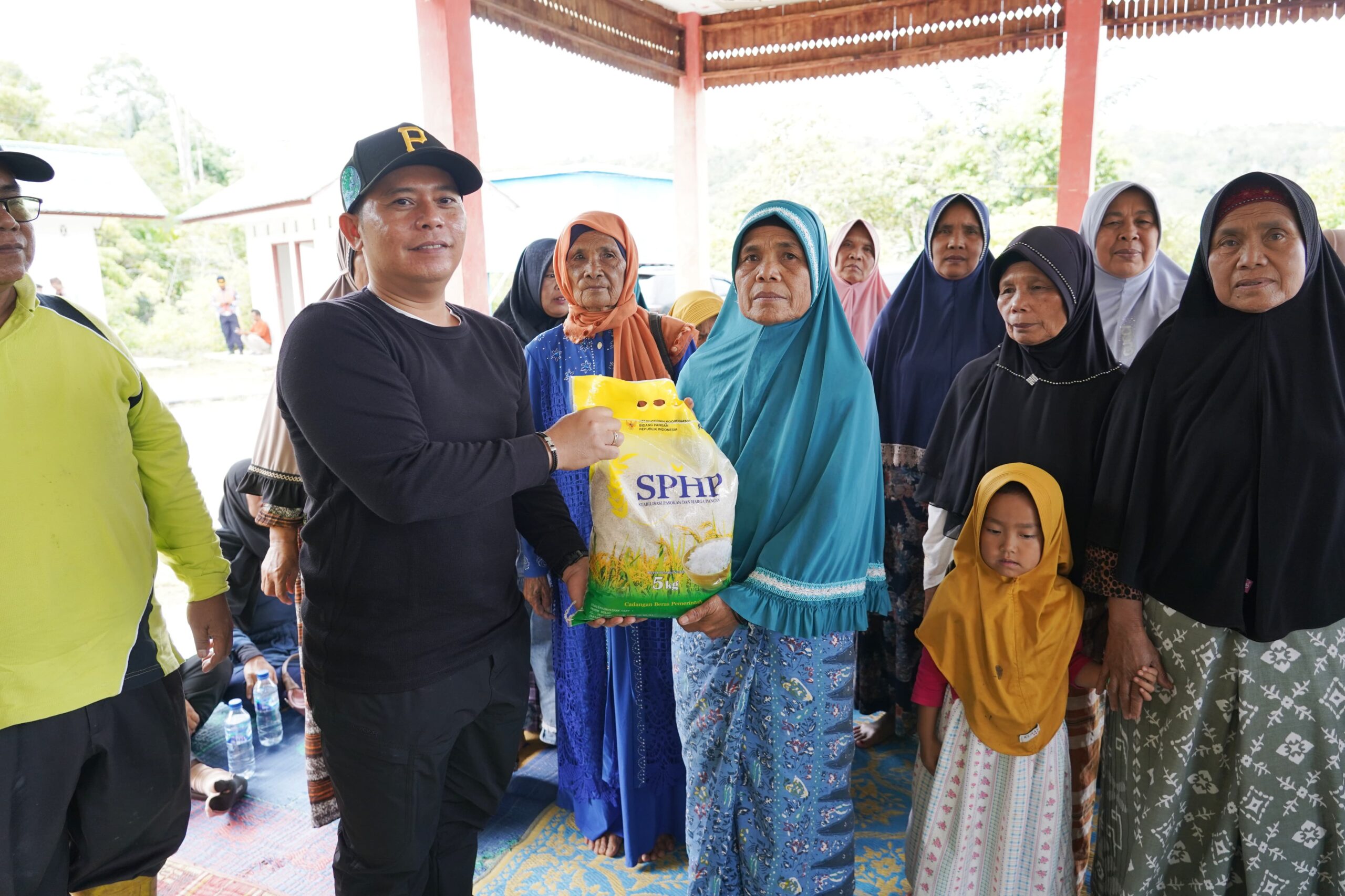 PALAS (Berita): Bupati Padanglawas (Palas) Putra Mahkota Alam Hasibuan SE, menyalurkan bantuan beras kepada masyarakat Desa Sianggunan Kecamatan Sosopan, Minggu (12/11/2025).
