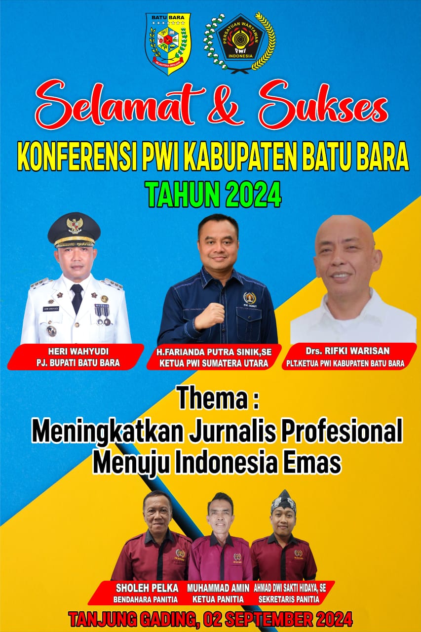 BATUBARA (Berita): Panitia Konferensi Persatuan Wartawan Indonesia (PWI) Kabupaten Batu Bara membuka pendaftaran calon Ketua PWI Kabupaten Batubara Periode 2024-2027.