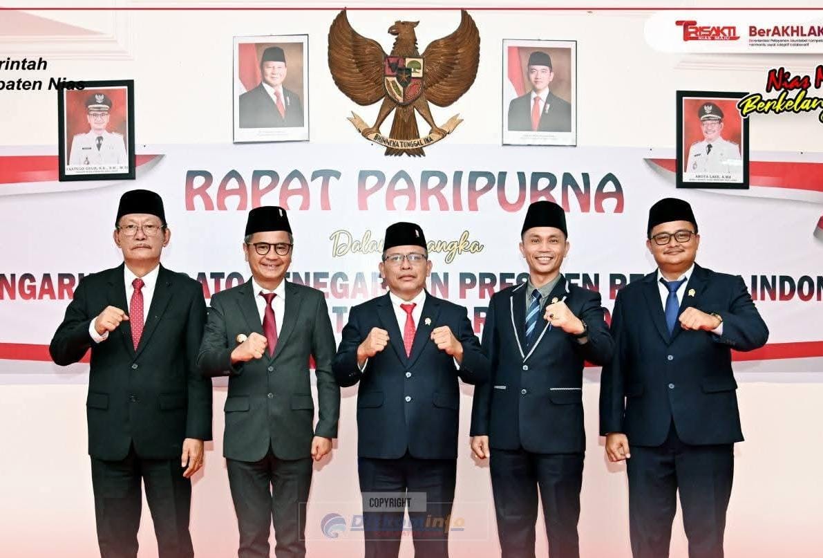 NIAS (Berita): Bupati Nias Yaatulo Gulo, S.E., S.H., M.Si menghadiri Rapat Paripurna DPRD Kabupaten Nias dengan agenda Mendengarkan Pidato Kenegaraan Presiden RI dalam rangka Peringatan HUT ke-80 Kemerdekaan Republik Indonesia Tahun 2025. Rapat yang berlangsung di Ruang Rapat Paripurna DPRD Kabupaten Nias dipimpin langsung oleh Wakil Ketua DPRD Otoni Gea, S.H. Jumat (15/08/2025)