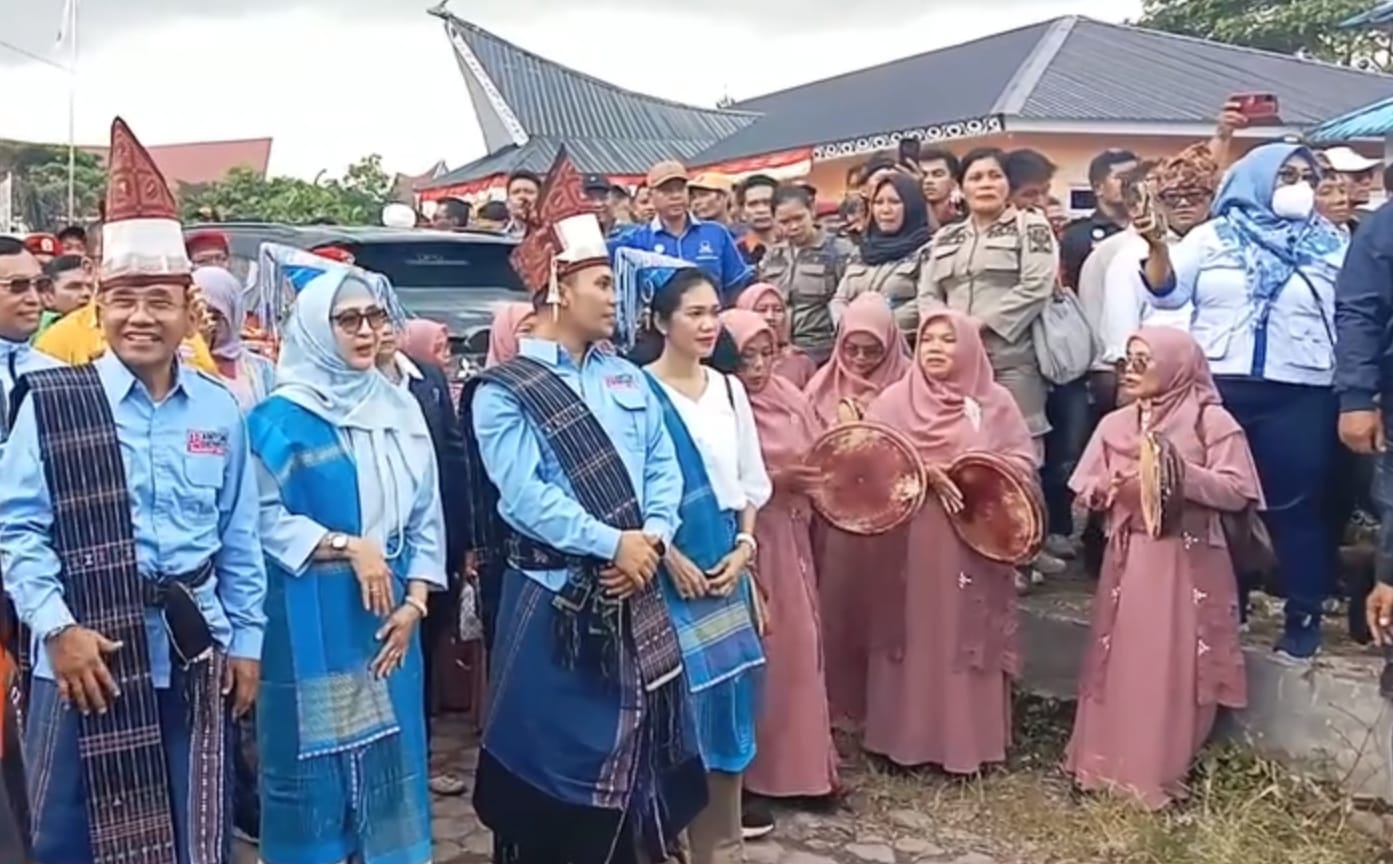 Pasangan Anton-Benny bersama pendukungnya memasuki lokasi kantor KPU Simalungun, sekira pukul 14.00 WIB dengan berjalan kaki diiringi grub Nasyid Modern.